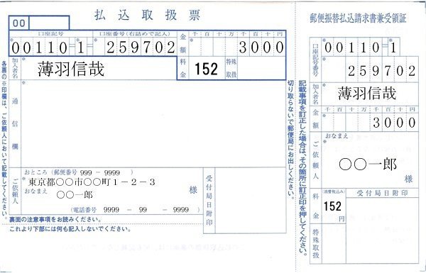 を、お使いください。払込取扱票(青色)は、郵便局のATMにあります。