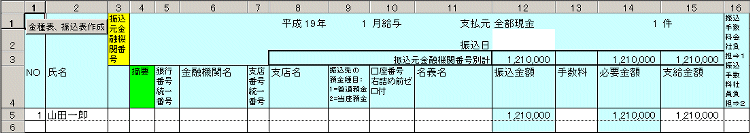 C列、振込元金融機関番号は、その行の従業員は、どの<振込元金融機関>を使うかを、入力します。