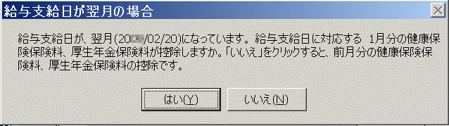 給与支給日が、給与月の翌月の場合は、「健康保険と厚生年金のコピー」ボタンをクリックした後に、支給日から見て前月(当月分)の健康保険、厚生年金をコピーすることが選べます。