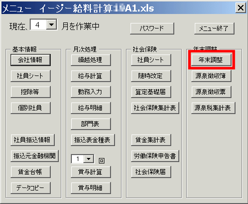 ■以上の設定をした後で、給与や賞与の計算を行えば、指定の給与、賞与で、年末調整が行われます。