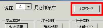 ※給料計算メニューを呼び出した場合は、現在、_月を作業中の右の、「パスワード」ボタンをクリックします。