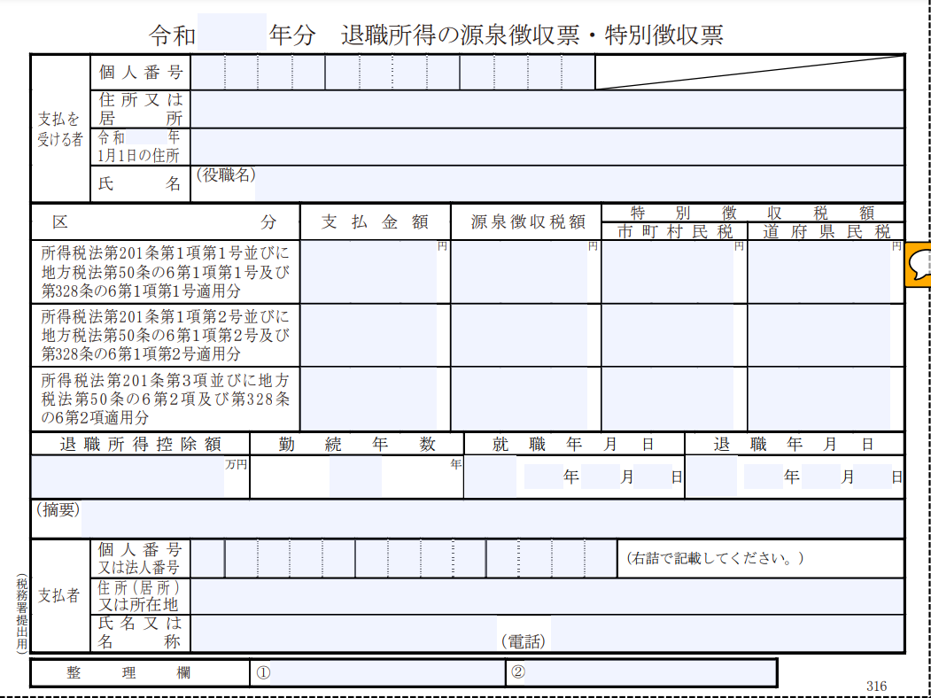 退職金の源泉徴収票のひな形(国税庁)に貼り付けで入力して、作成して印刷できます。